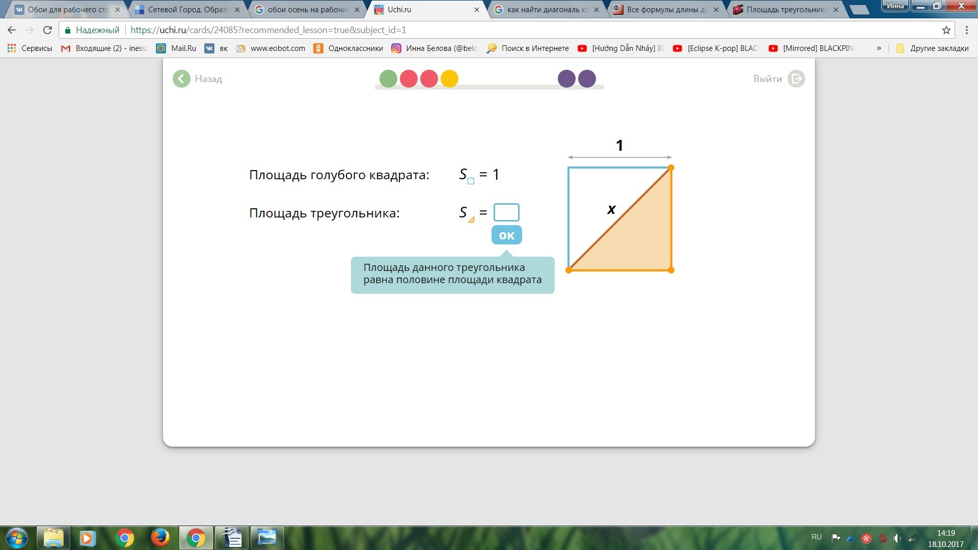 Половина площади квадрата значит 1/2