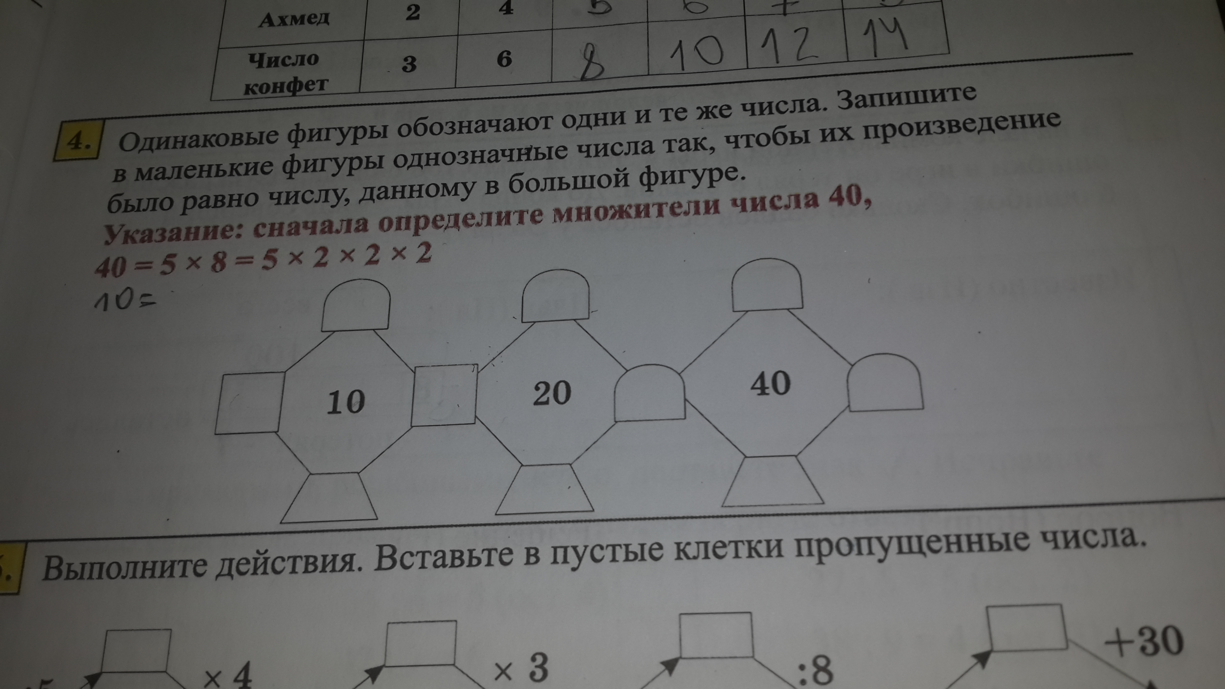 Одинаковые фигуры отображают одинаковые множители.