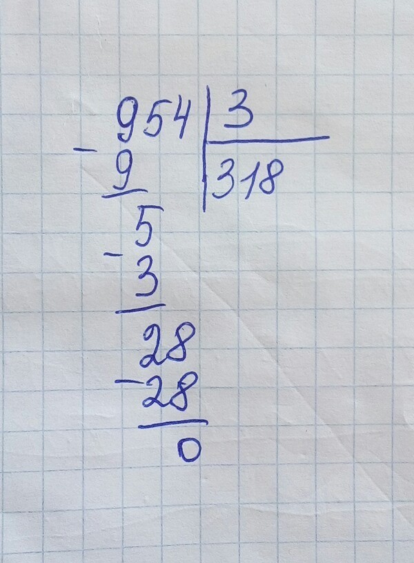 Будет 318 954/3=318; 9/3=3 54/3=18