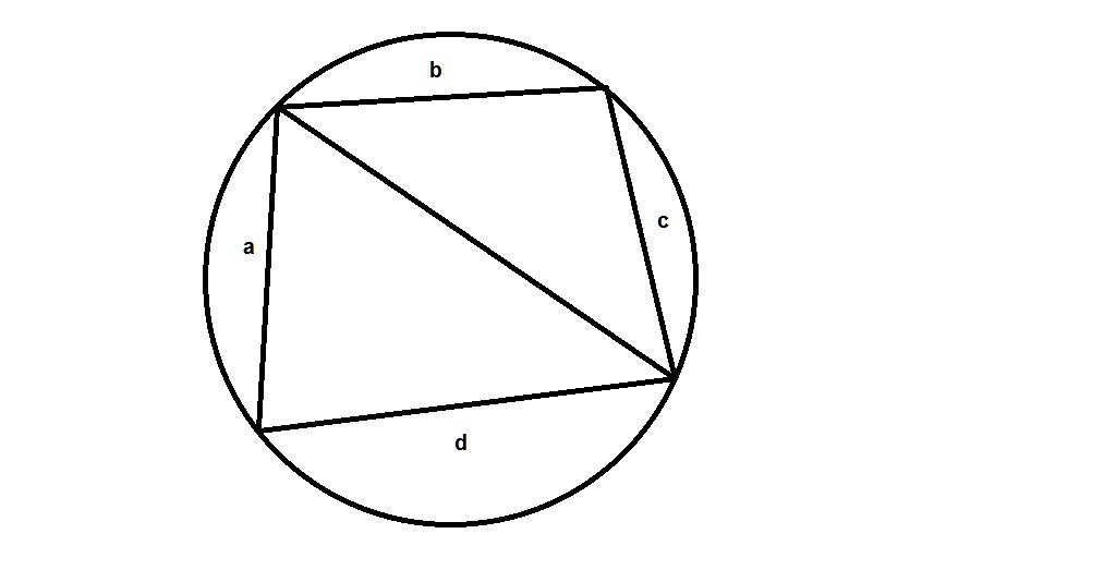 Проведем в четырехугольнике диагональ и выразим ее по теореме косинусов с двух сторон