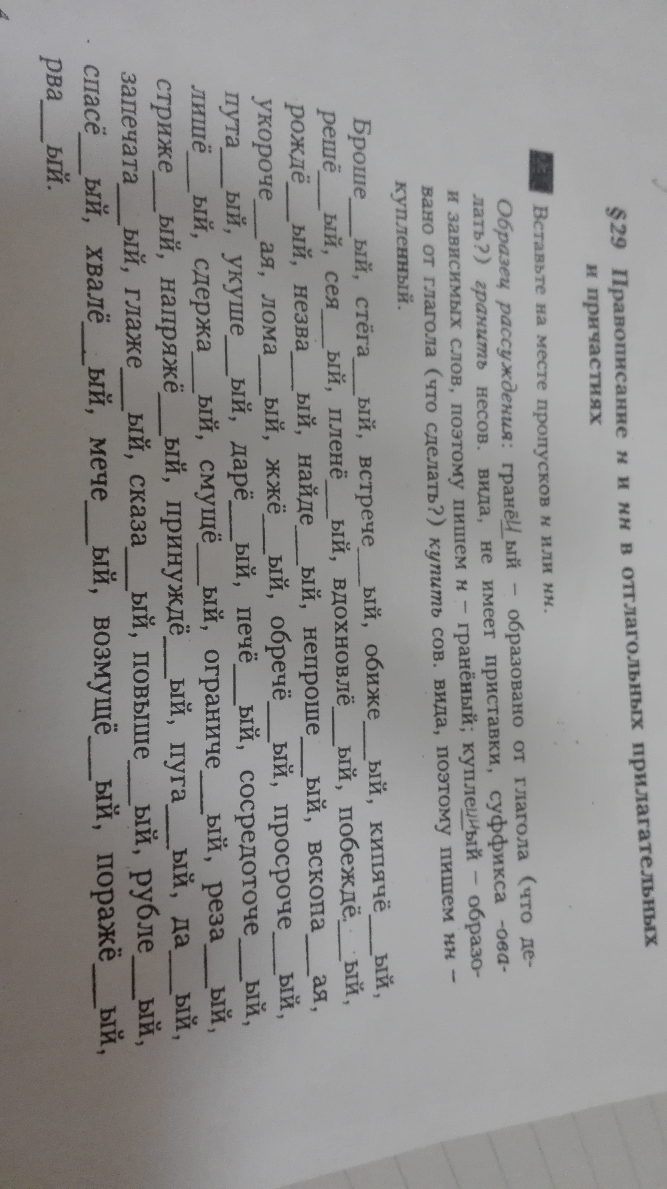 Брошенный, стеганый, встреченный, обиженный, кипяченый, решенный, сеяный, пленённый, вдохновленный, побежденный, рожденный, незваный, найденный, непрошеный, вскопанная, укороченная, ломаный, жженный, обреченный, просроченный, путаный, укушенный, дареный, печеный, сосредоточенный, лишенный, сдержанный, смущенный, ограниченный, резаный, стриженный, напряженный, принужденный, пуганый, данный, запечатанный, глаженый, сказанный, повышенный, рубленый, спасенный, хваленый, меченый, возмущенный, пораженный, рваный