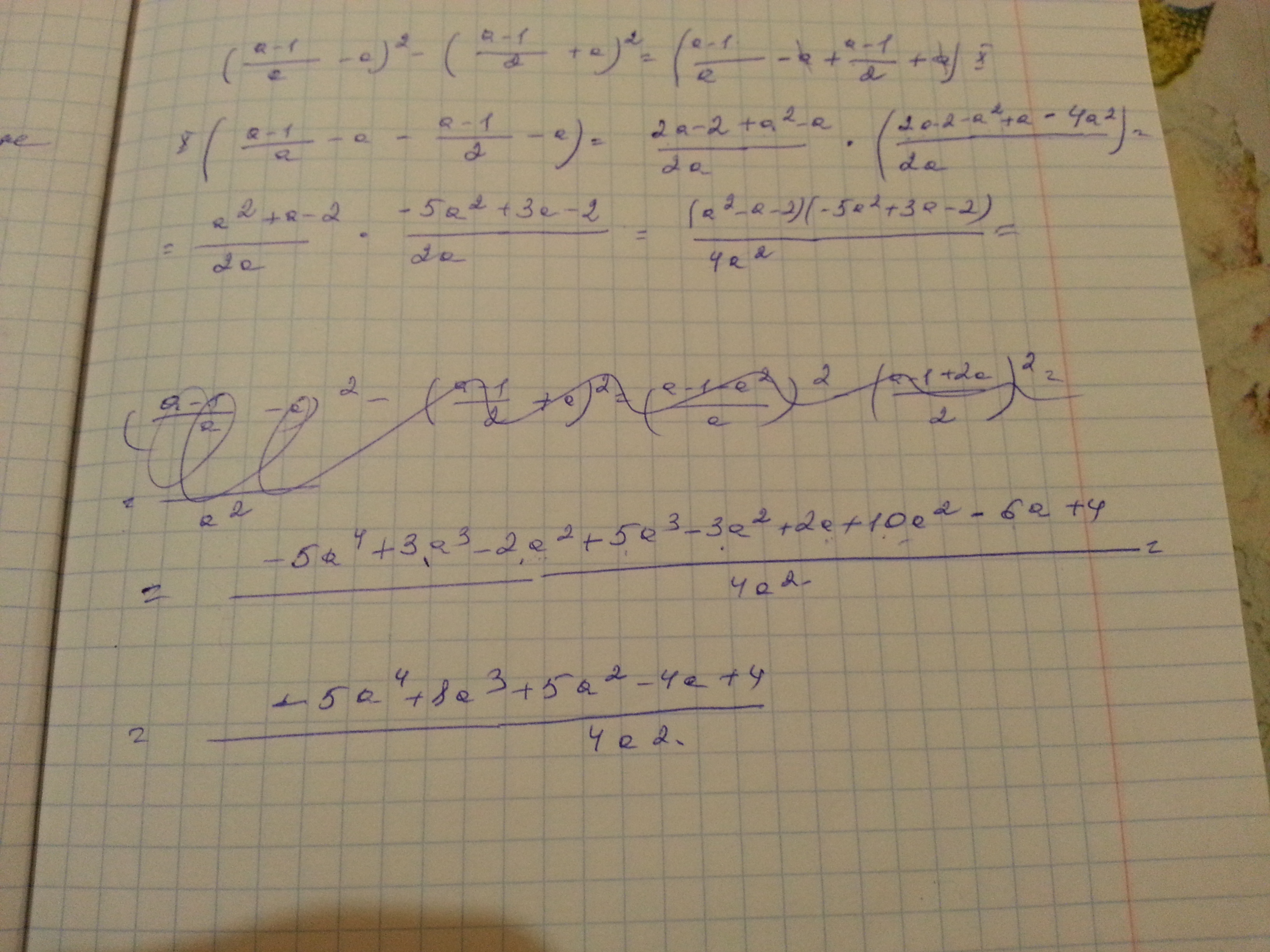 ( (a-1)/a-a)² - ( (a-1)/a+a)² =(a-1)/a-a -(a-1)/a -a) (a-1)/a -a+(a-1)/a+a) =