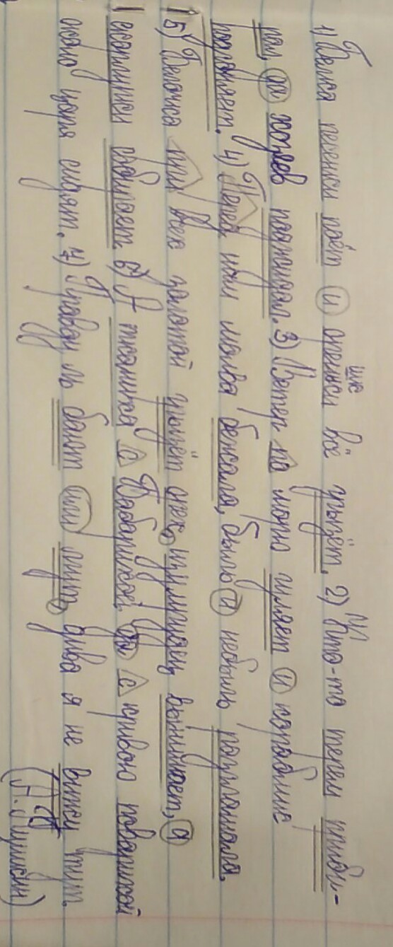 Надо было вставить знаки препинания, найти однородные члены, указать союзы и предлоги ( союз - о, предлог - ∆)