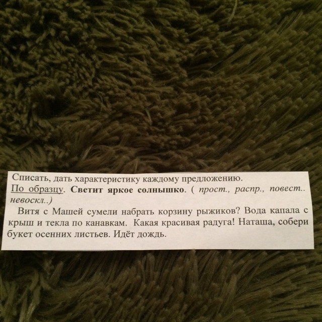 Наташа, собери букет осенних листьев. (простое, распростр, повествовательное, невосклиц)
