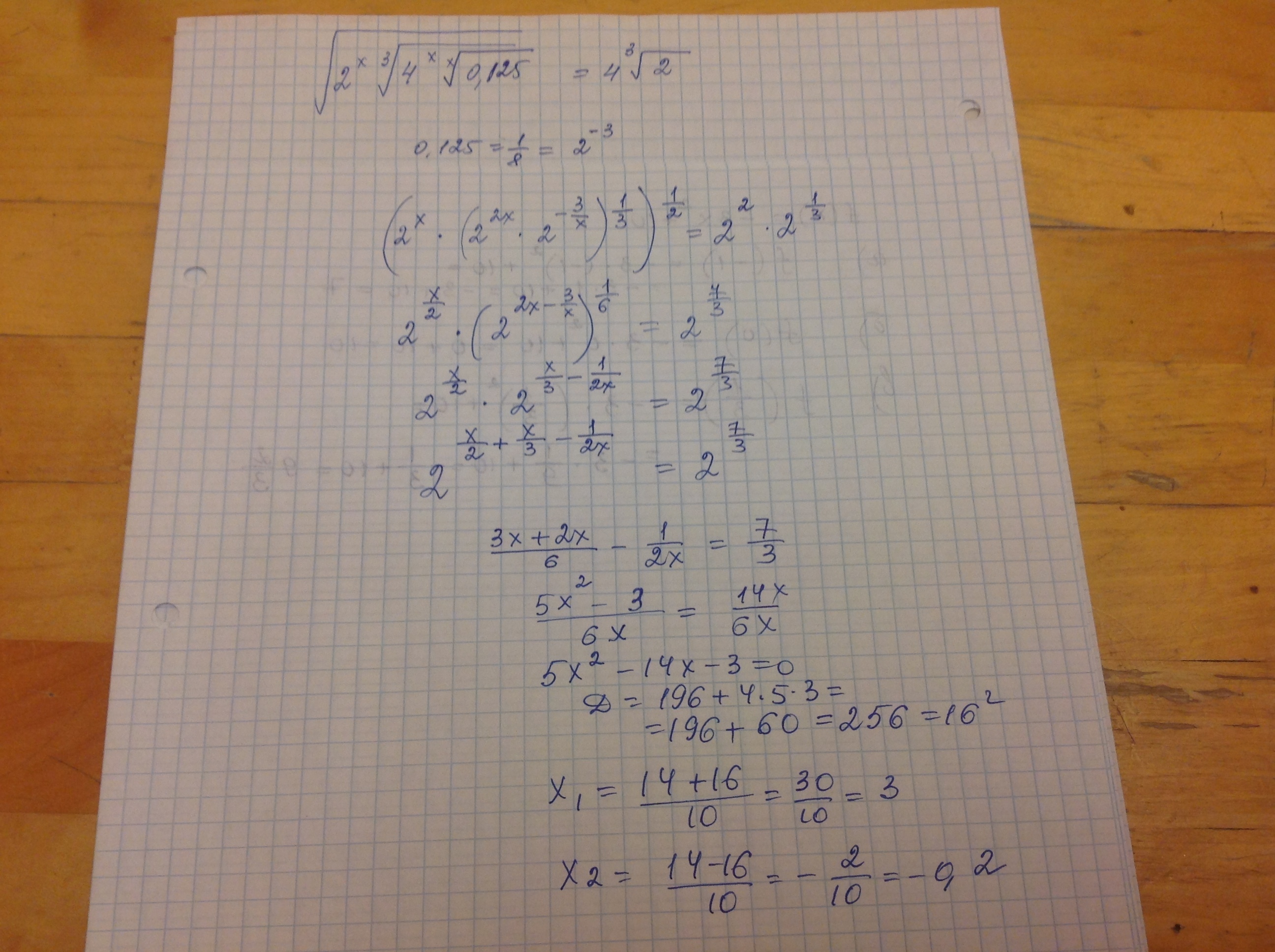 4) 2^x * 2^((2x²-3)/3x) = 2^((5x² - 3)/3x)