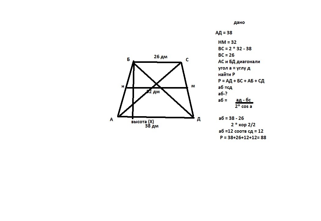 1.средняя линия = 7*3=21