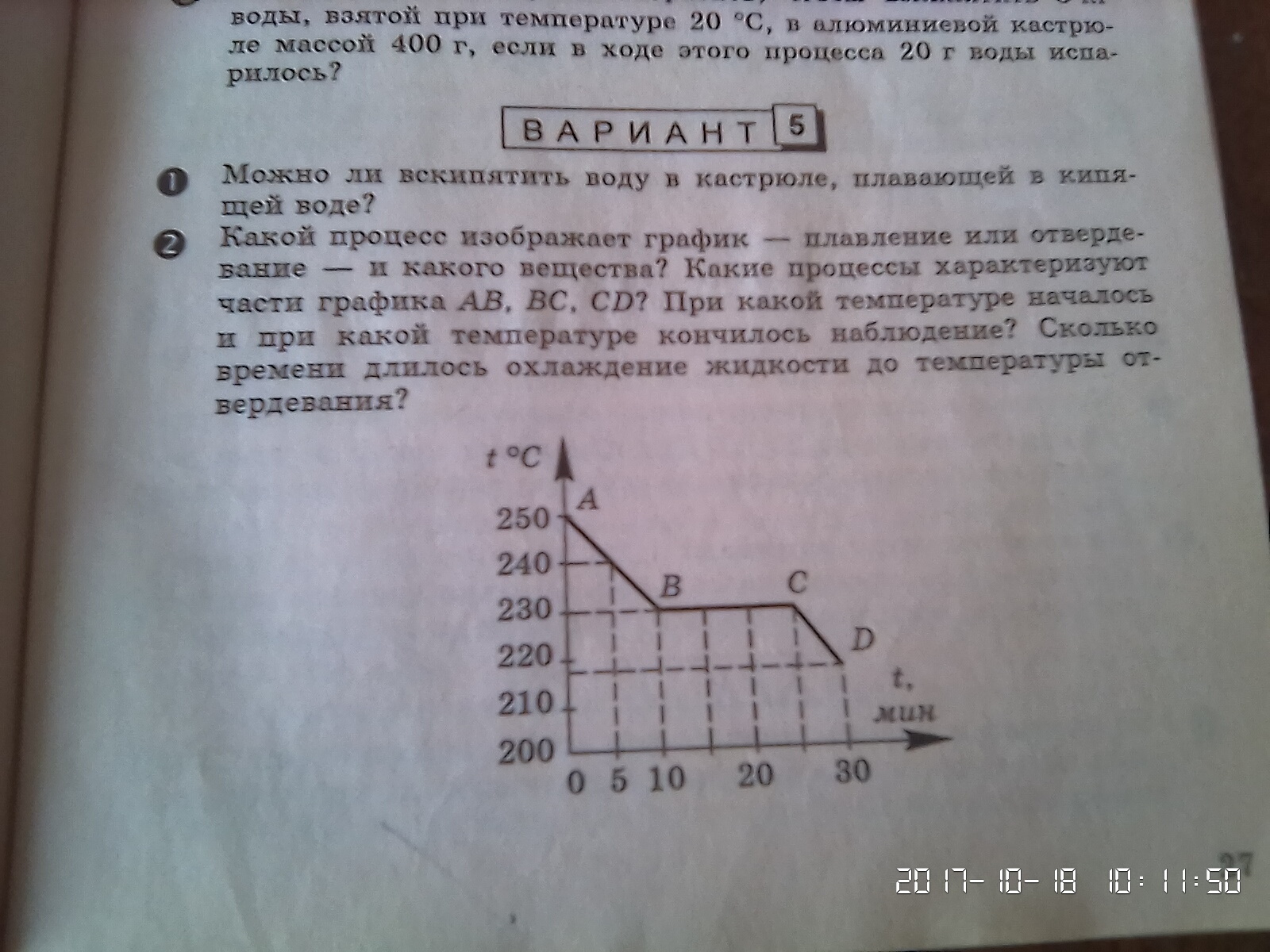 отвердевание, олово аб-охлаждение жидкого олова, вс - процесс отвердевания сд -охлаждение твердого олова Наблюдение началось при температуре 250 градусов закончилось при температуре 220 градусов.... охлаждение жидкого олова длилось 10 мин