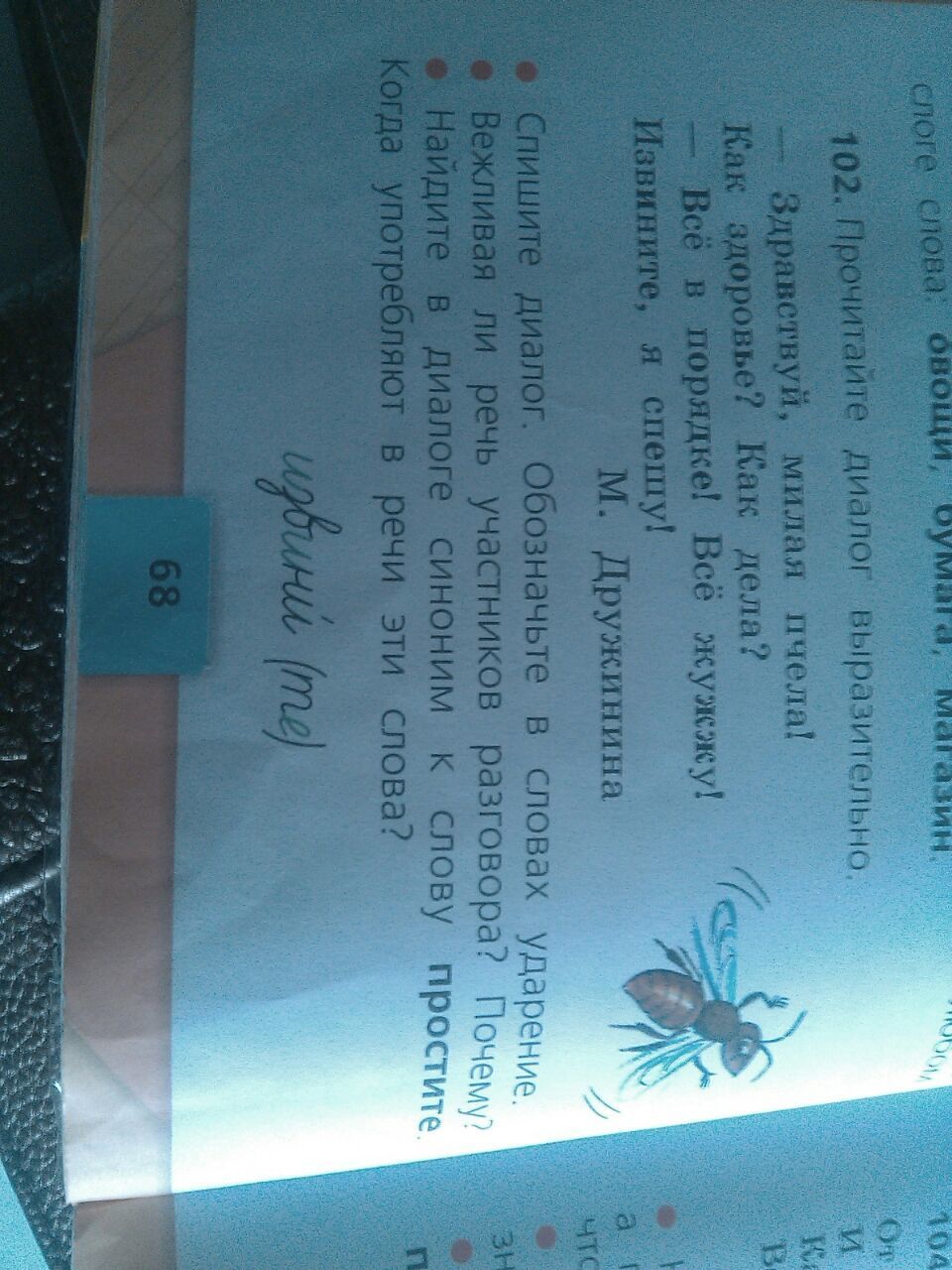 Вначале нужно списать диалог. Затем выделить синоним (синон мы - слова похожие по значению). Синоним - Извините.