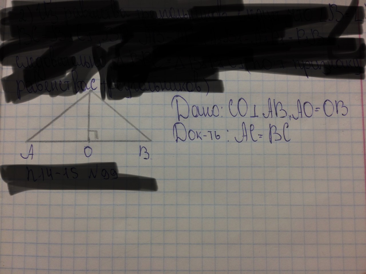 1)тр. АОС=тр. ОСВ (по двум катетам) => АС=ВС(соотв. элементы)