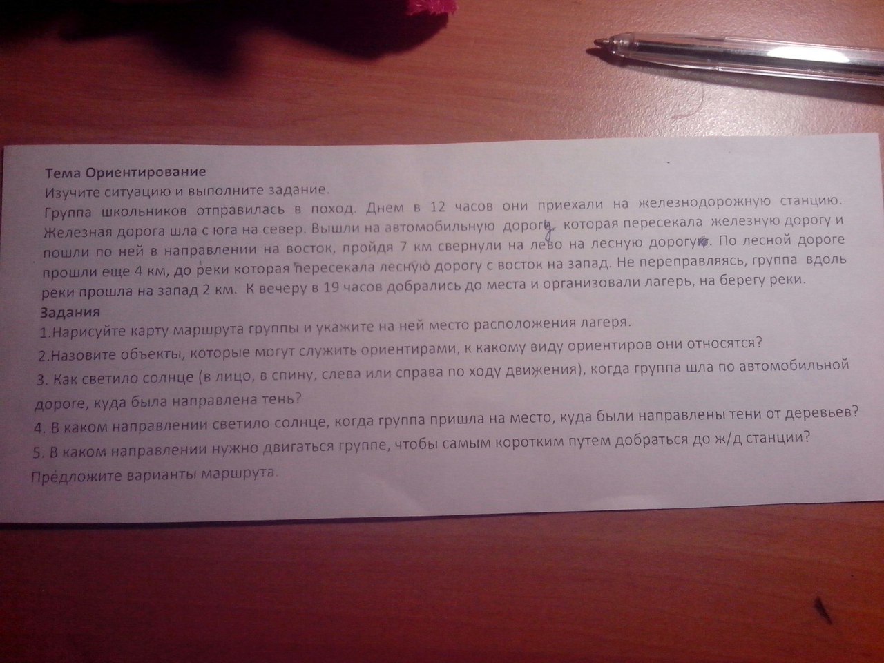 4- солнце светило на восток, тени падали на восток.