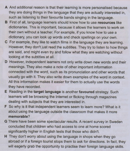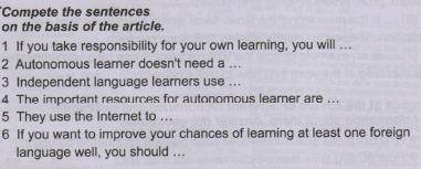 4. The important resources for autonomous learner are books, dictionaries, films, music and native speakers