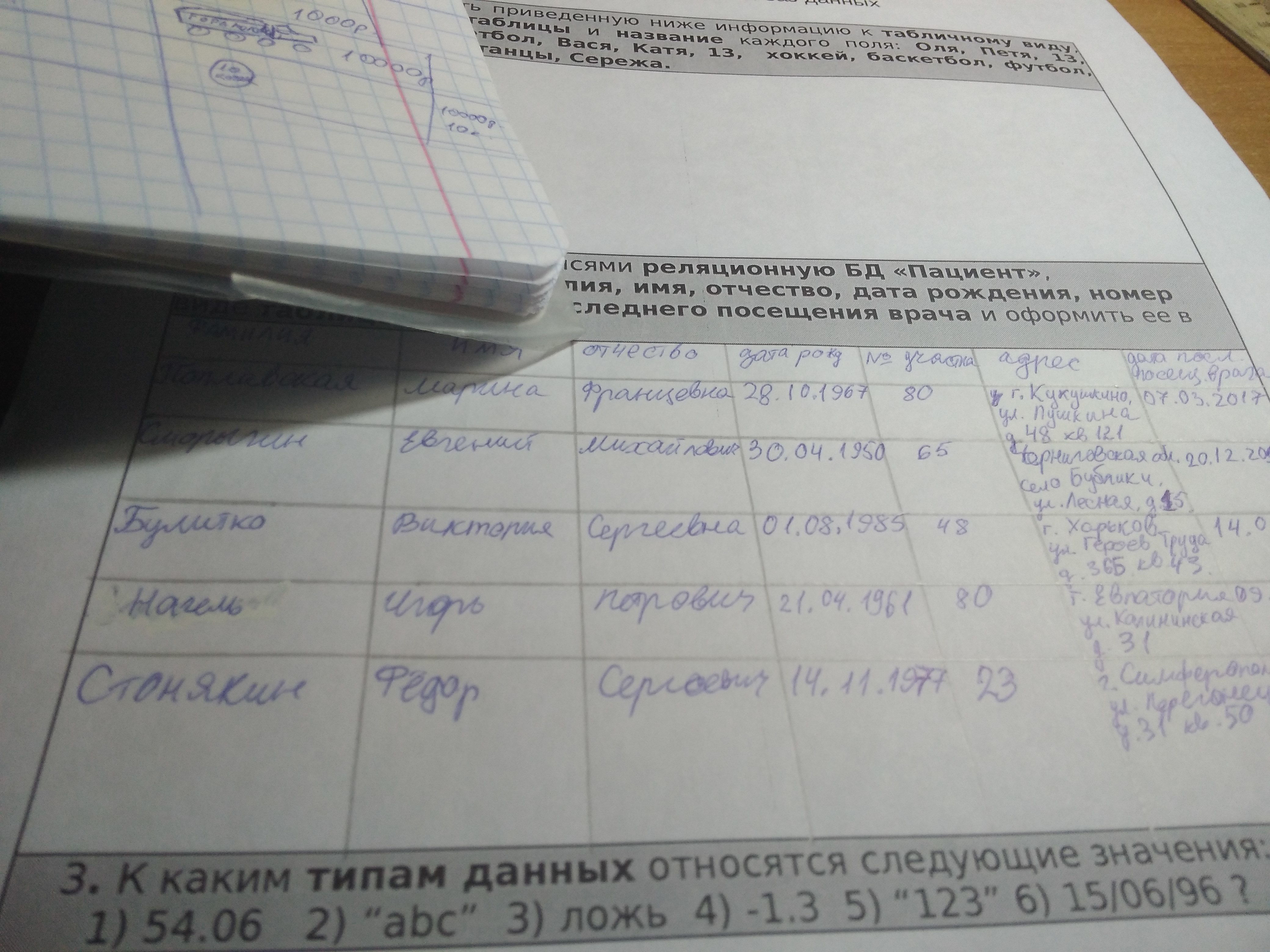 6: а вот что до этого типа данных, то по идее ее можно записать в какой-то из структурированных типов(массив, строка, чаще применяют объект т.е. хреновина включающая в себя несколько видов полей - структура, класс )
