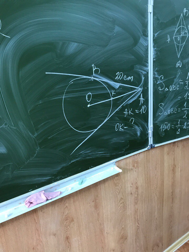 OB⊥AB(касательная перпенд. радиусу в точке касания)