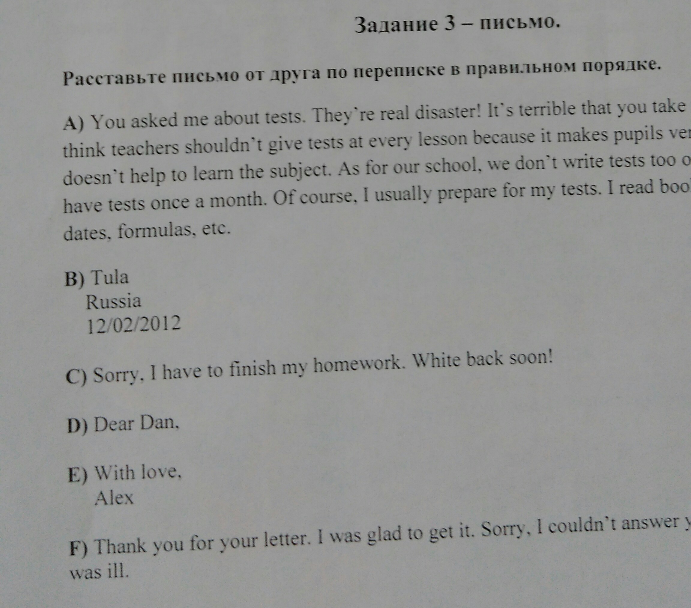 Сначала идет приветствие, потом небольшое вступление. Далее само письмо. Потом окончание, заключительная часть :/