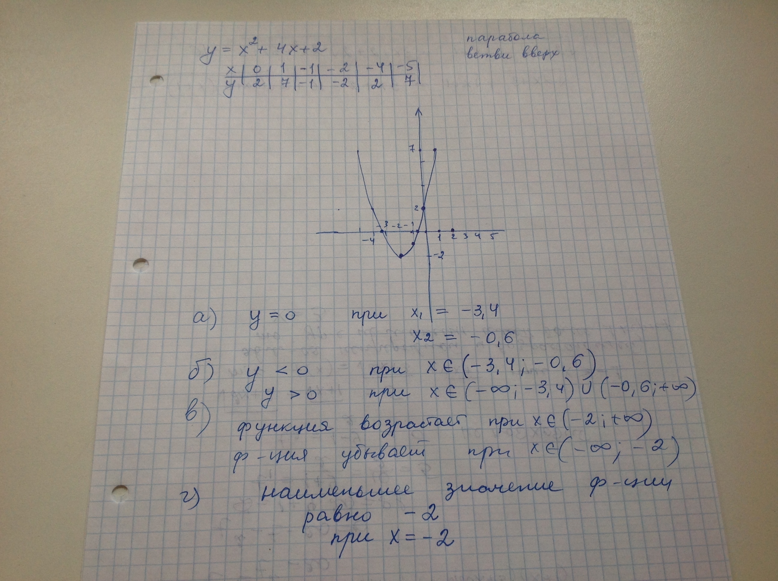 постройте график функции y=x^2+4x+2 найдите по графику а) нули функции