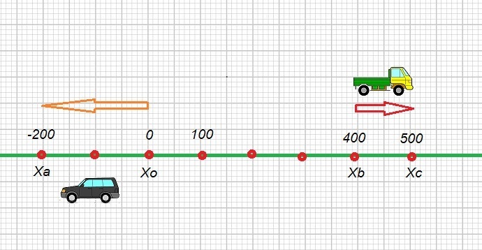легковой автомобиль движется по прямолинейному шоссе в момент начала наблюдения он имеет координату x0=0 через промежуток времени t положение его определяется координатой xa=-200м.Грузовой автомобиль в начальный момент имеет координату xb=400м.Через тот же промежуток времени положение его определяется координатой xc=500м.В каком направлении от начала координат движутся автомобили?Найдите изменение положения