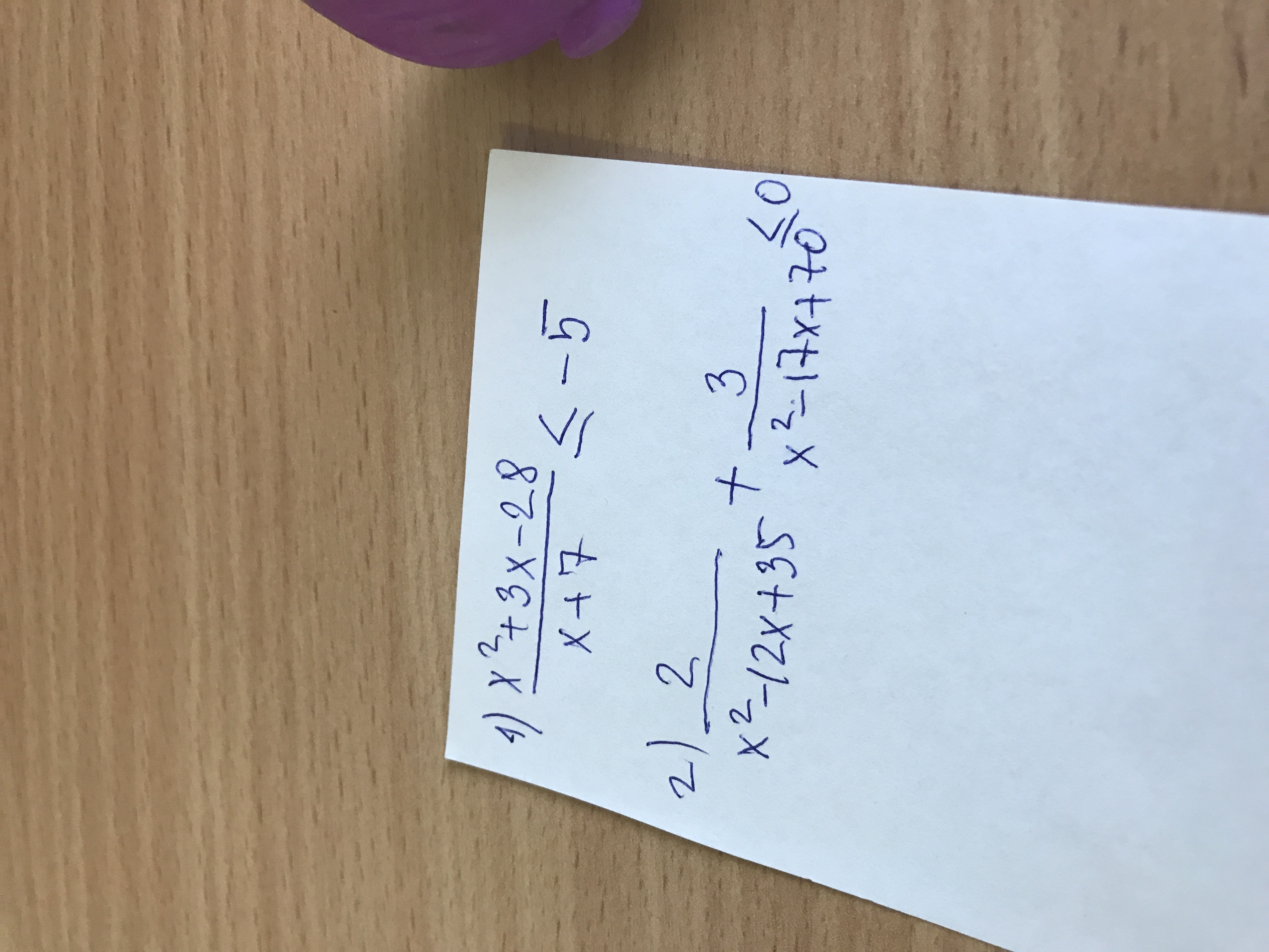 x^2 + 3x - 28 / (x+7) <= -5