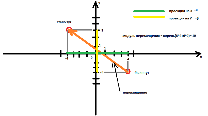 переміщення та знайдіть його проекції на осі координат. Визначте модуль