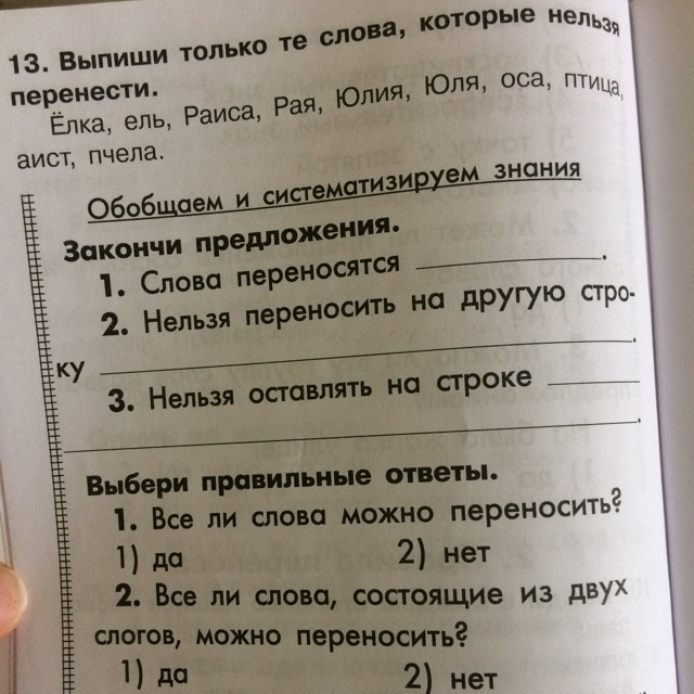 Ель , Рая , Юля , оса , аист .