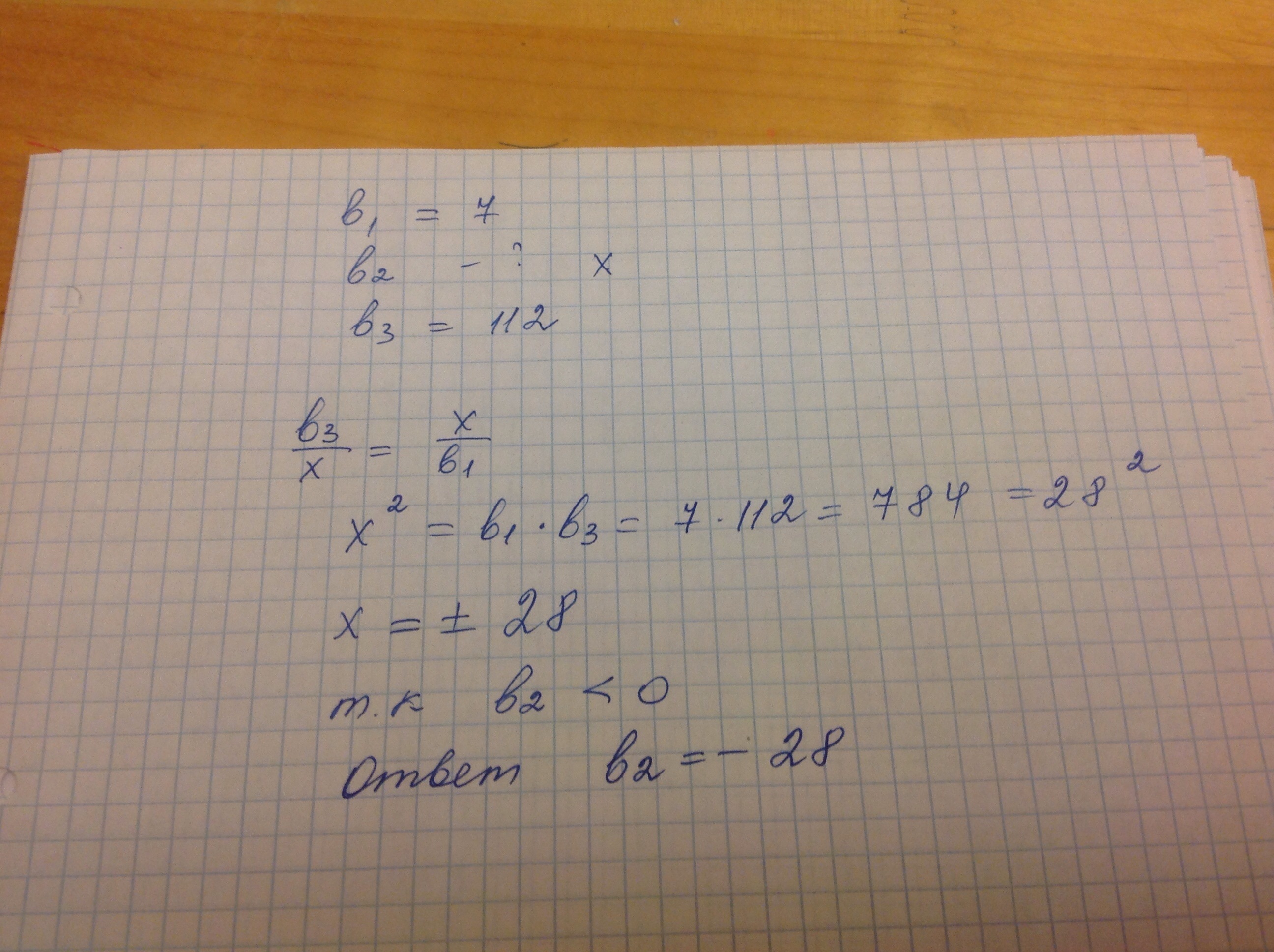 между числами 7 и 112 вставьте отрицательное число так чтобы получилось три первых последовательныхчлена геометрической прогрессии