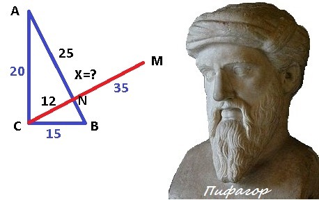 Катеты перпендикулярного треугольника равны 15 20 см извержение прямого угла C проведён перпендикуляр 35 см вычислите расстояние от точки М до гипотенузы