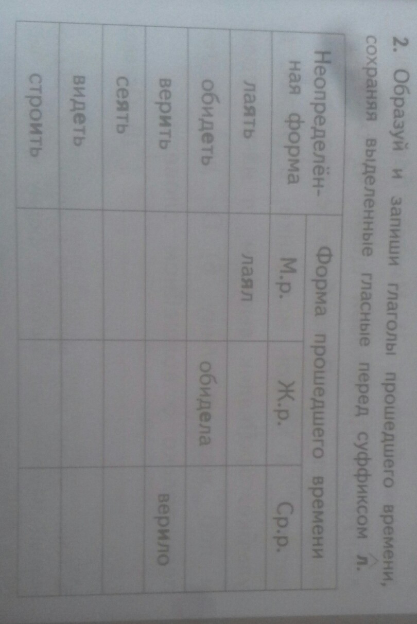 образуй и запиши глаголы прошедшего времени сохраняя выделенные гласные перед суффиксом л