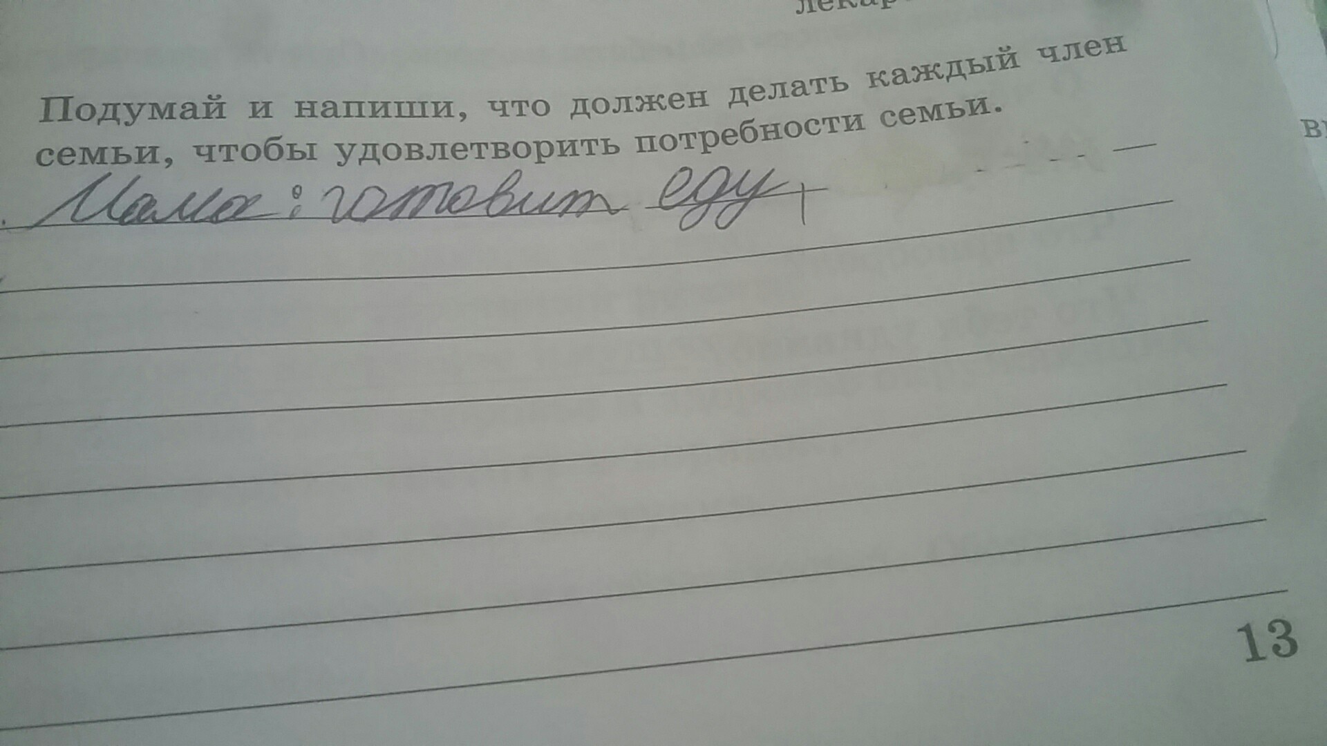 Папа-работать покупать еду,помогать убираться маме и Маше