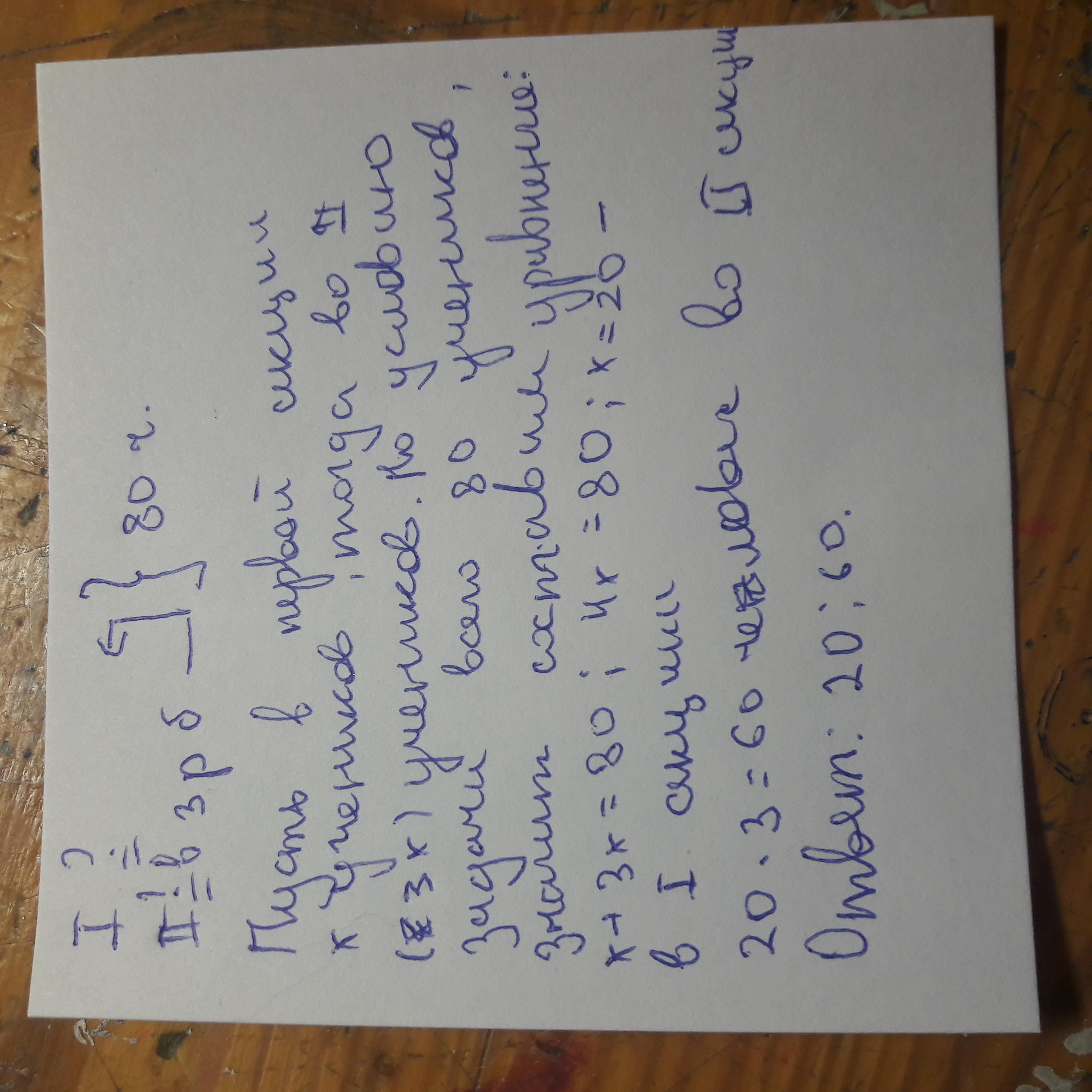 в двух спортивных секциях занимаются 80 учащихся.в первой секции занимаются в 3 раза меньше учащихся,чем во второй сколько учащихся занимается в каждой секции ?нужно составить краткую запись задачи.помогите решить