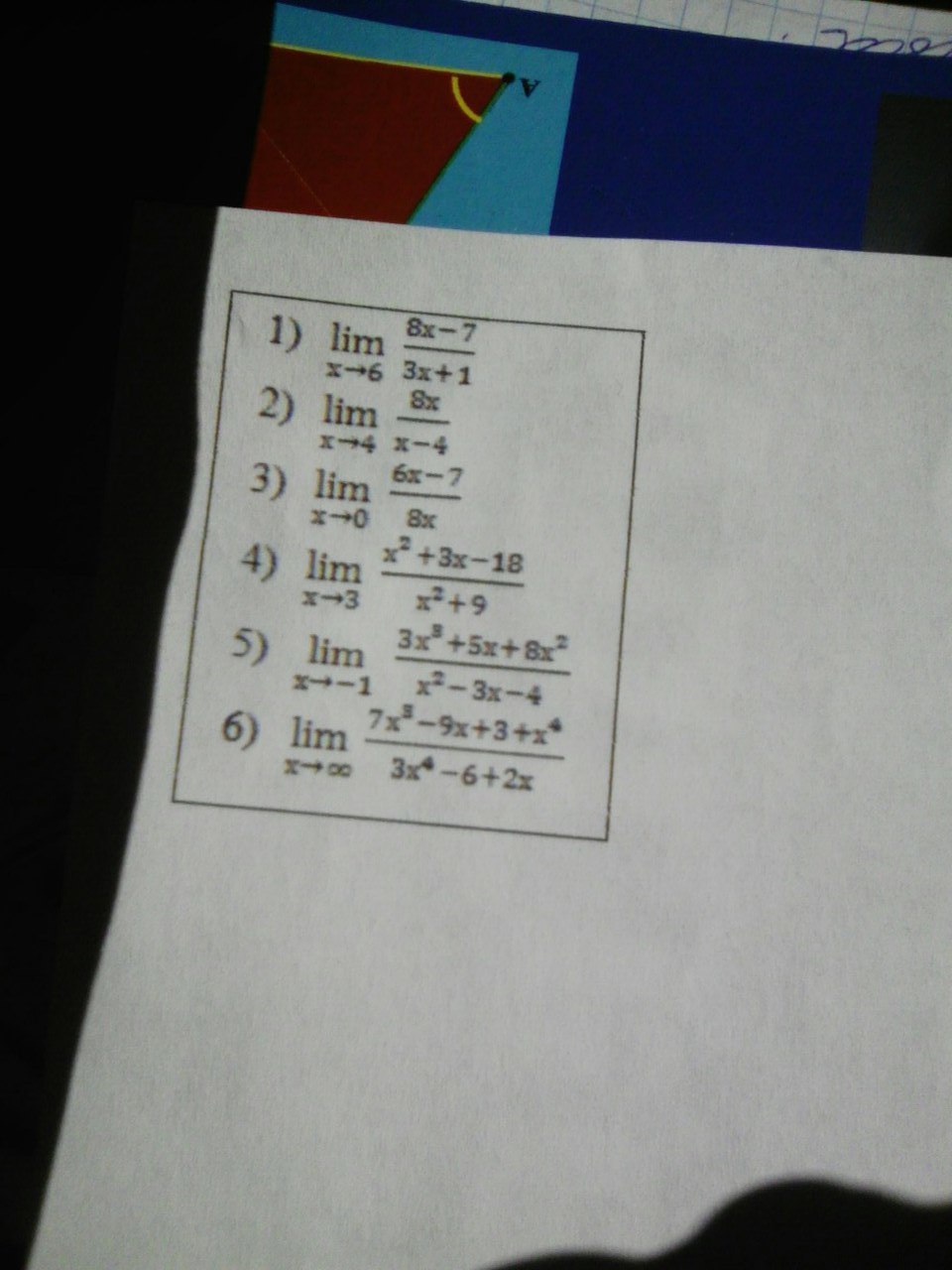 6) lim x стремиться к бесконечности 7x в кубе - 9x + 3 + x в четвертой/3x в четвертой - 6 + 2x