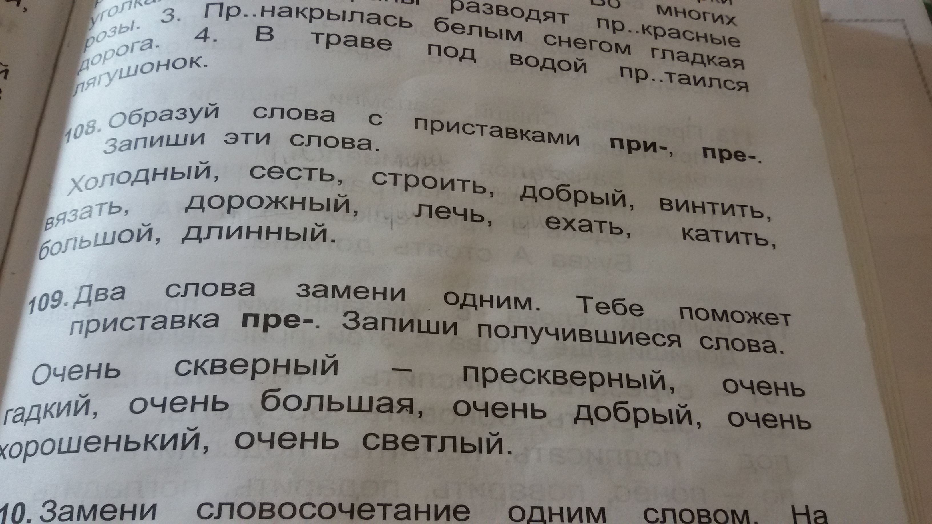 холодный-прехолодны,сесть-присесть.строить-пристроить.добрый-предобрый. винтить-привинтить.вязать-привязать.дорожный-придорожный.лечь-прилечь.ехать-приехать.катить-прикатить.большой-пребольшой.длинный-предлинный.