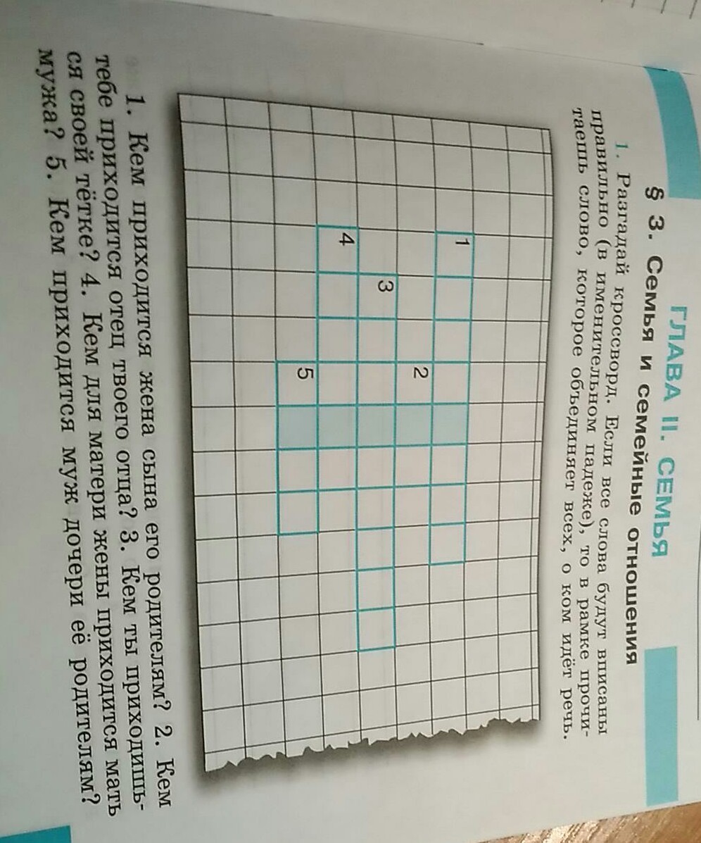 1) Невестка, 2) - Дед, 3)- Племянник, 4) - Сватья, 5) -зять