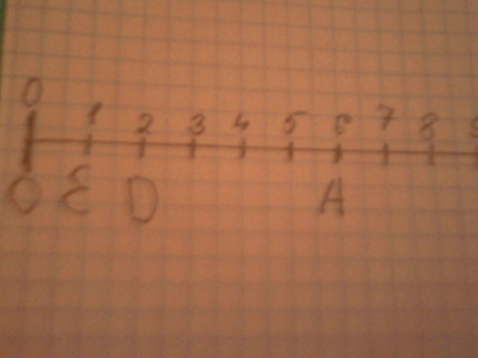 Начертите числовой луч и отметьте на нем точки D(2),Е(1),О(0),А(6).Единичный отреззок равен 1см.