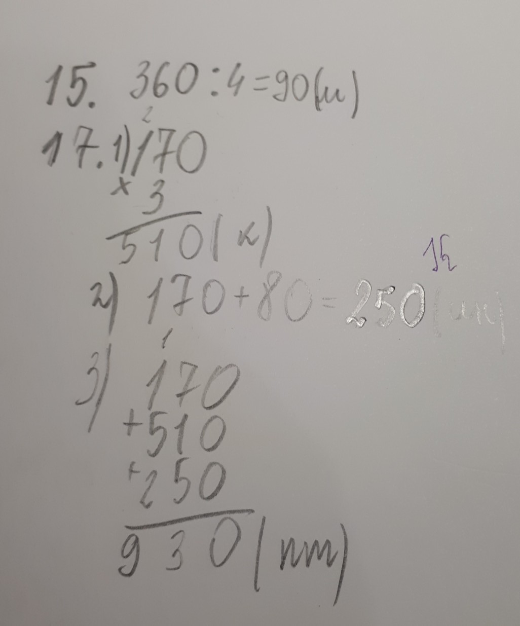 15. 360м 1/4-? ост.-? 360×1:4=90 м