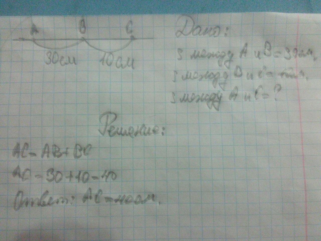 Я решала так, как решаются задачи по геометрии, но если у тебя её нет, то тогда можешь убрать "Дано" и просто написать АС = 30+10=40 см.