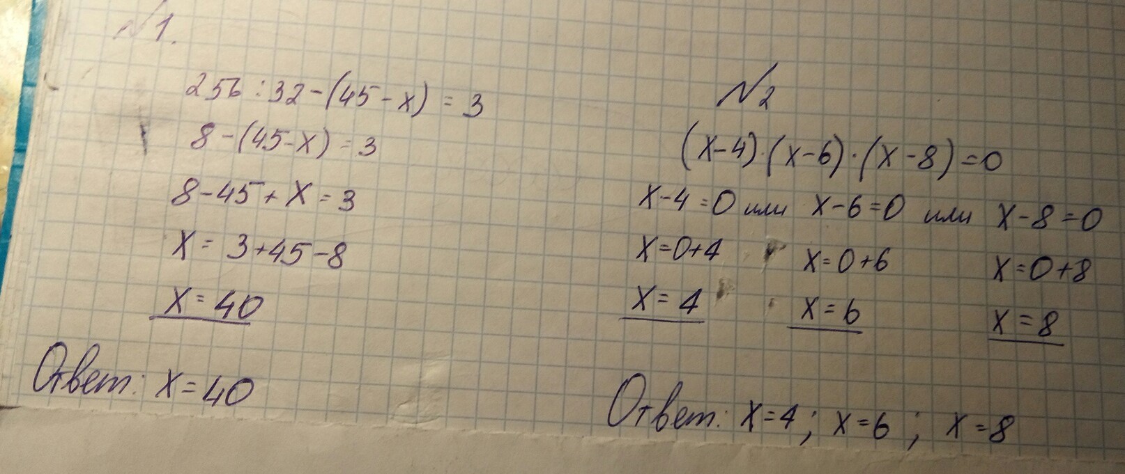 Догадайтесь, каковы могут быть корни уравнения (х-4)*(х-6)*(х-8)=0