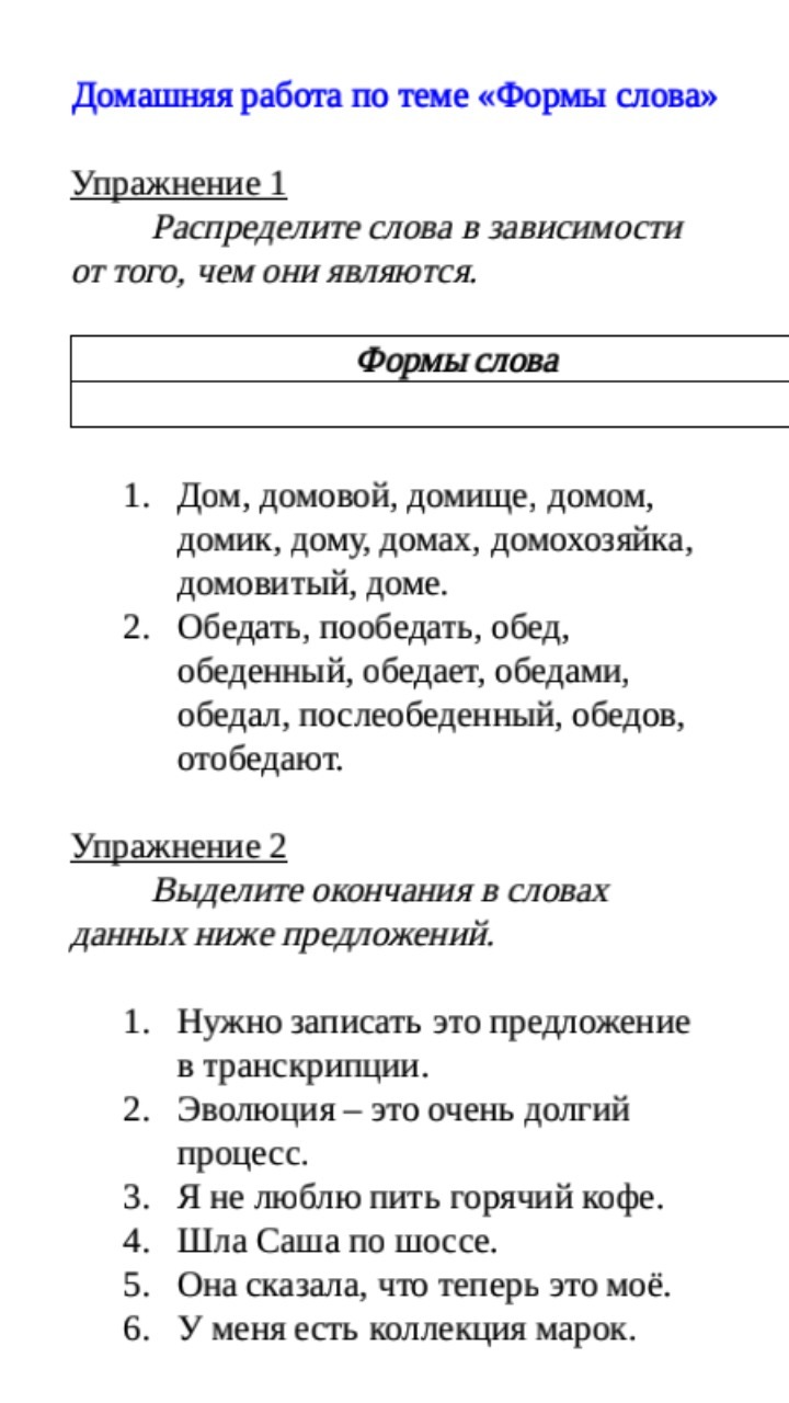 2) Форма слова: обедать, обедает; обед, обедами, обедов