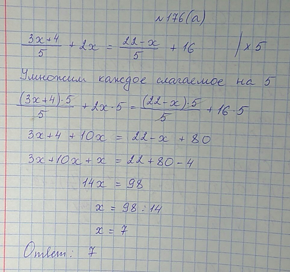 Упростим уравнение, умножив его на 5. Ответ: 7.