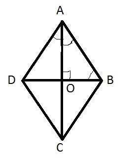 Т.к диагонали в ромбе делят углы пополам ∠OAB = 30(60 : 2), при пересечения диагоналей ромба образуются прямые угла ⇒ ∠AOB = 90,
