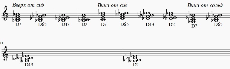 Д₇,Д⁵₆ , Д⁴₃, Д₂ от ноты СиЬ ⇵(Вниз и вверх) и от ноты СольЬ (Только вниз).