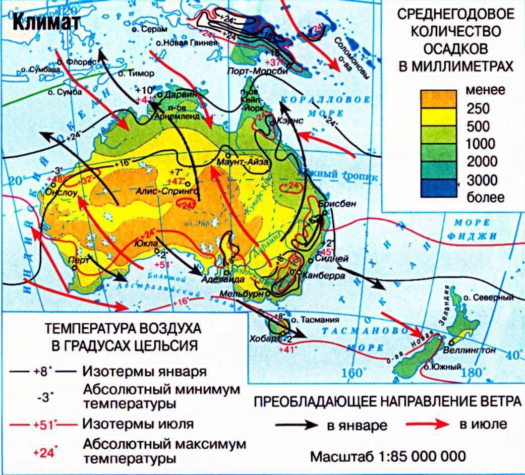 Как океанические течения и преобладающие ветры пассаты усиливают сухость климата Австралии.