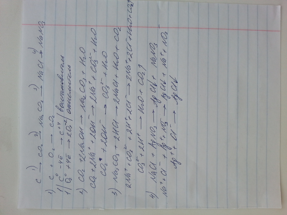 Осуществите цепочку превращения , рассмотрите каждое уравнение с точки зрения ТЭД ( напишите полные и сокращенные ионные уравнения ) или ОВР(составьте уравнения ОВР методом электронного баланса ): C-CO2-NaCI-NaNO3