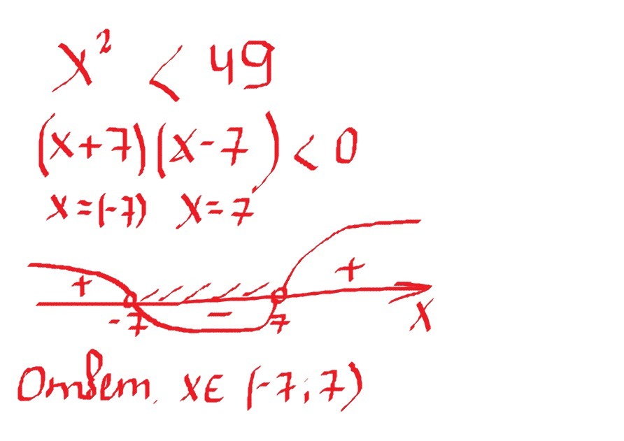 f(x)<0 при x принадлежащий промежутку (-7;7)