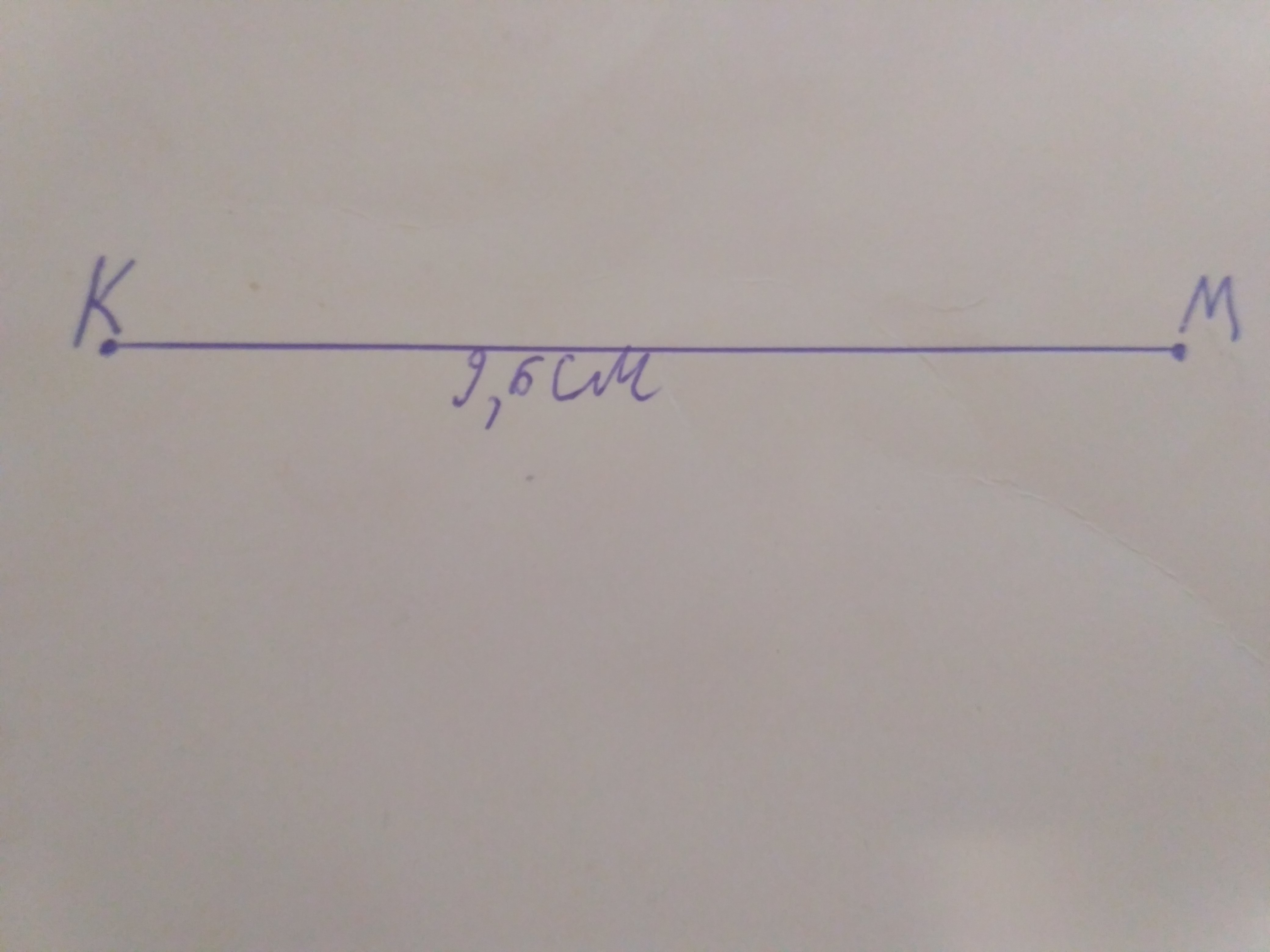 Довжина видризка ОЕ 12мм що становить 1/8 довжини видризку КМ.Знайди довжину видризка КМ и накресли його