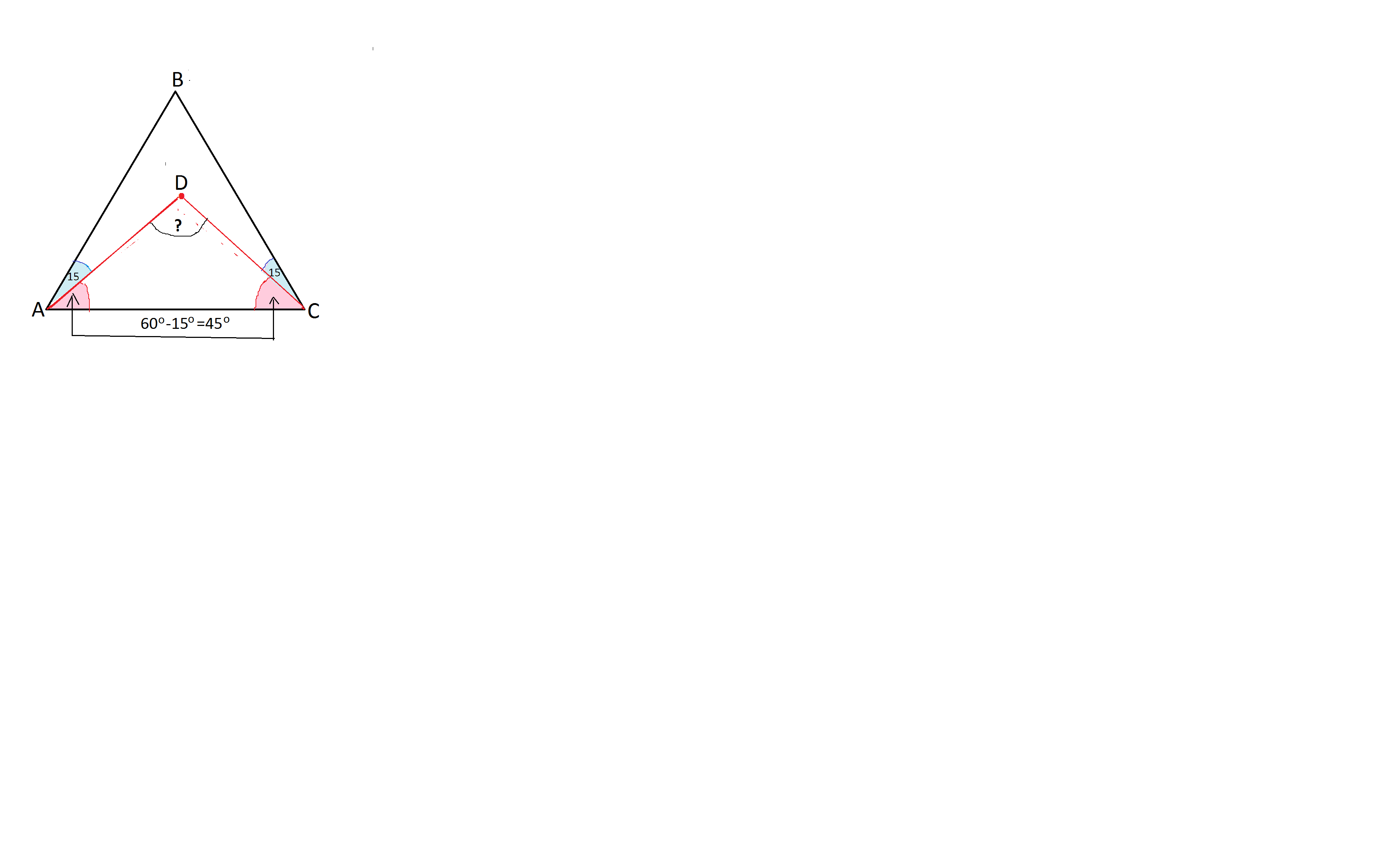 В треугольнике АDС углы при основании АС равны 60°-15°=45°