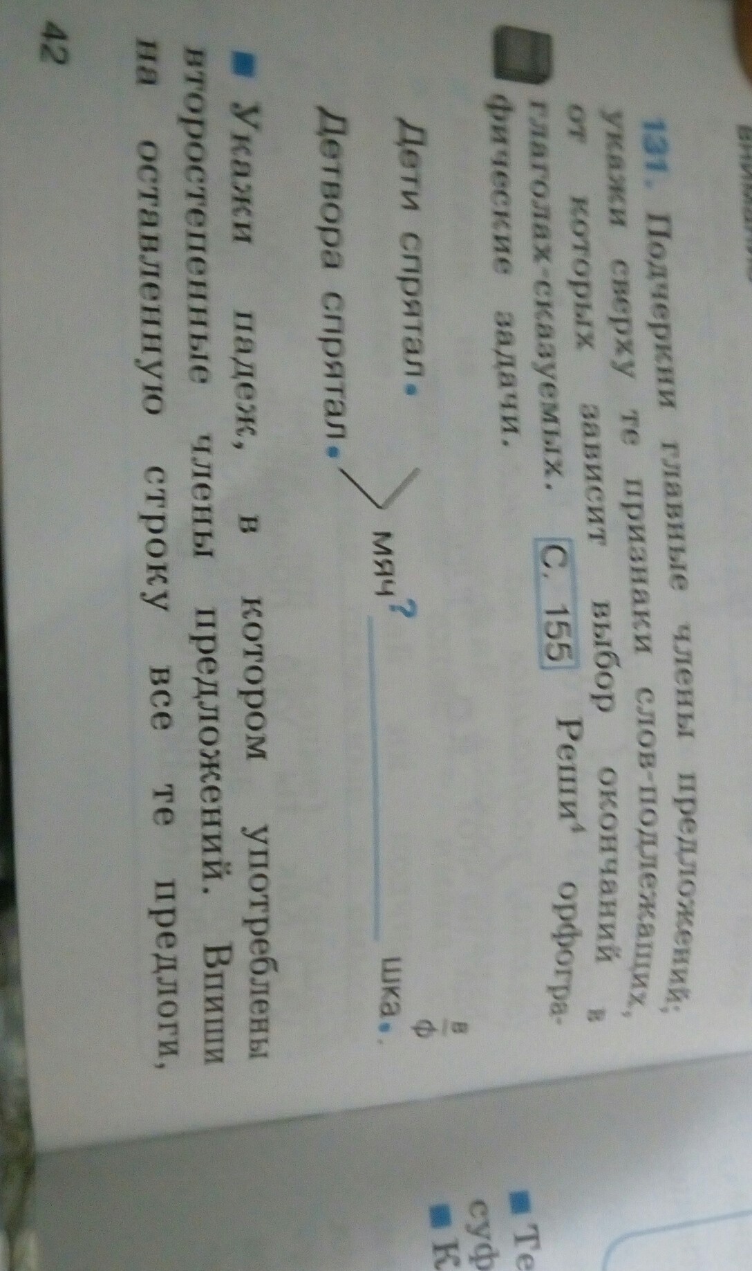 Дети спряталИ мяч( без ь) в/на/под шкаФ