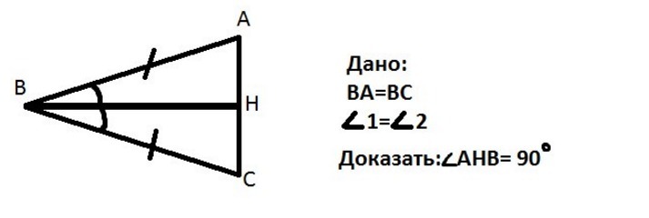 т.к BH - биссектриса делит угол пополам,а он еще и равнобед => AHB - 90 °