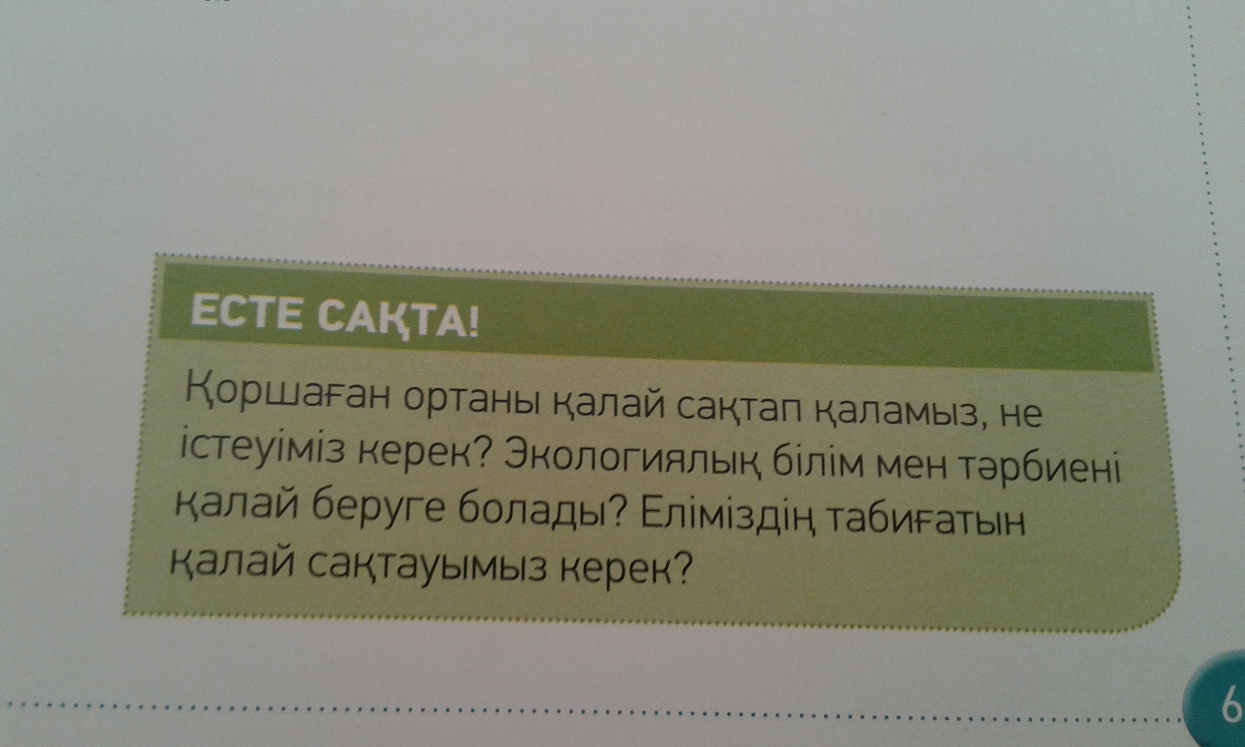 Қоршаған ортаны таза ұстау үшін .басқа жерді өзінің үй алдындағы бақшан сияқты елестетуміз керек.əртүрлі іс - шаралар ұжымдастыру керек .қазақстанымыздың экологиялық жағдайы біздің қолымызда сол себепті қоқысты арнайы қоқыс жəшігіне салуымыз қажет.