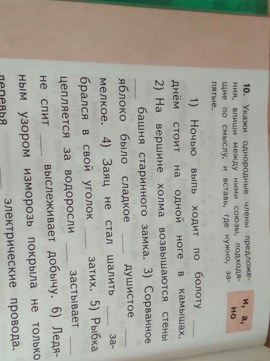 Ночью ходит выпь по болоту, а днем стоит на одной ноге в камышах. (Ходит, стоит-однородн)