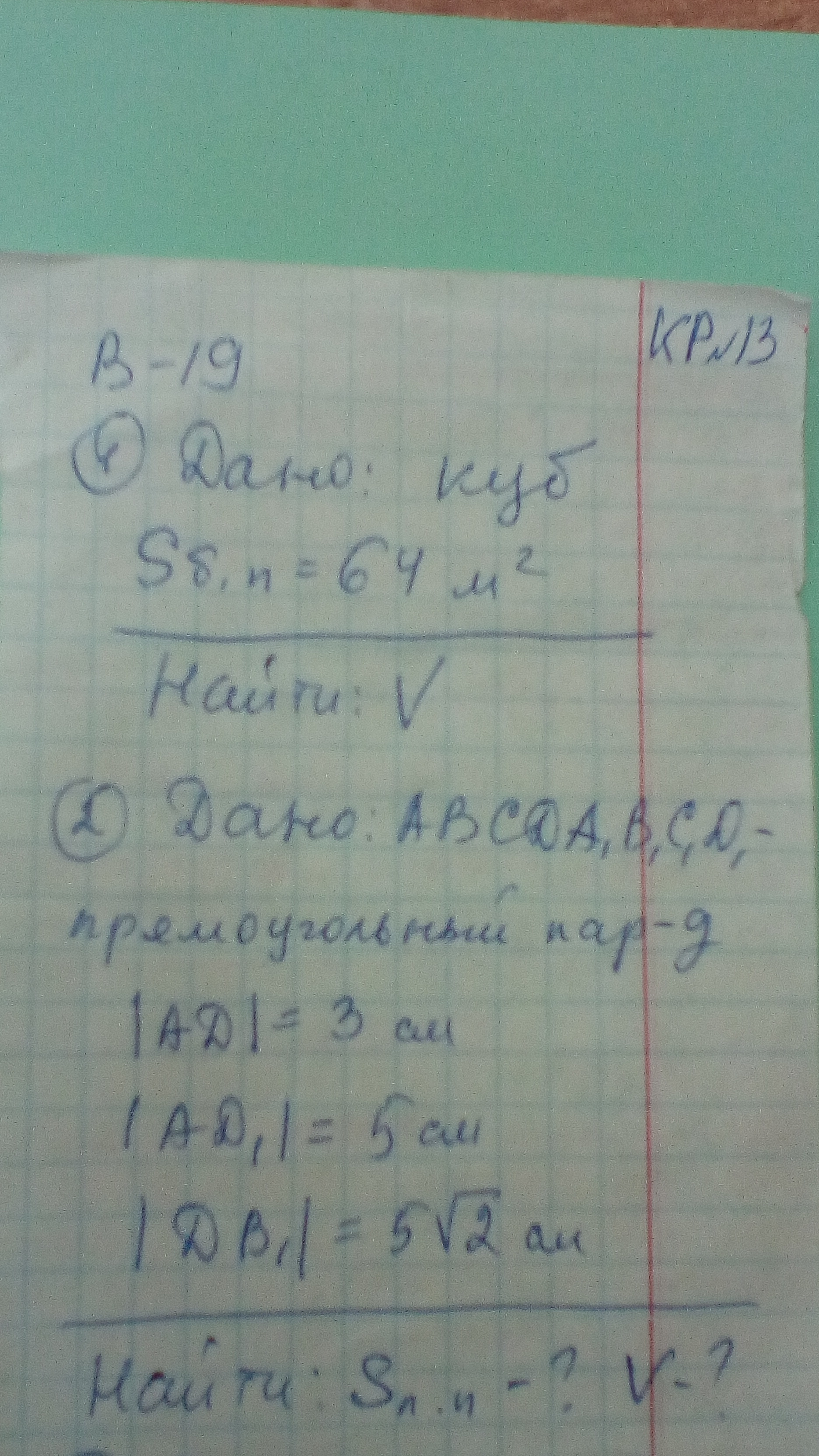 1)Объем куба равен :( Sqrt(64 / 6))^3 = (8Sqrt(1/6))^3 = 8^3 * 1/6 *Sqrt(1/6) =