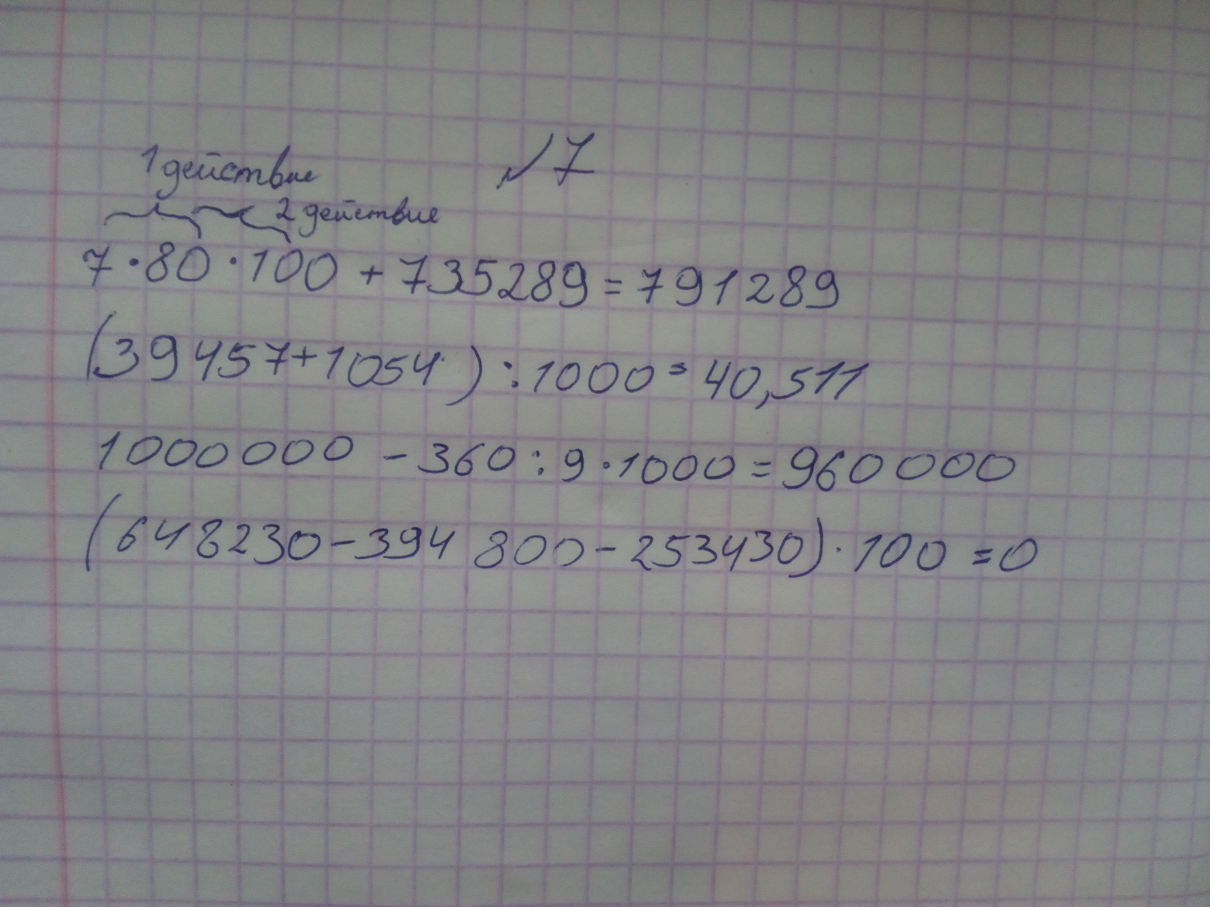 1. 7•80•100+735289=5600+735289=791289.